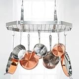 Keep pans organized and accessible on this octagon-shaped hanging cookware rack. It features 12 stainless-steel pot hooks, and a brushed stainless-steel finish designed to match all kitchen décors. Measuring 32.28 by 15.43 by 14.76 inches, the durable rack is simple-to-assemble and install with included hardware.