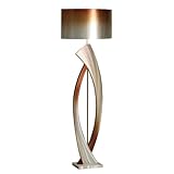 Distinctive and modern, this floor lamp looks smart next in your updated decor. It features a curved open-frame base that impresses with a brushed aluminum finish with rust highlights. A stout drum shade in rust and silver-colored aluminum completes this look. Three-way socket allows for a variety of lighting options.