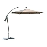 Note that this umbrella will not stand up on its own. You have to put a lot of weight on the base. You can buy a fancy plastic base that you fill with water. You can instead use landscape paving stones -- the 16x16 inch ones that run about $5 each at Home Despot. You need at least 4 of them. I used 6 because I was worried about the wind. The stand is made to nest these paving stones and it is a fine solution to weighting the base.